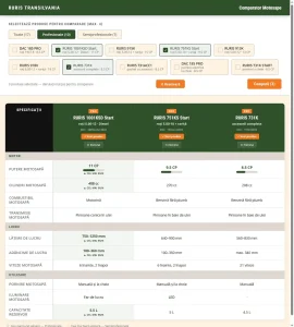 Alegerea unei motosape devine mult mai simplă când vezi diferențele esențiale într-un singur loc. Folosește comparatorul RURIS Transilvania pentru a analiza rapid modelele disponibile în funcție de putere, motorizare, lățime și adâncime de lucru, transmisie, pornire, dotări și tipul de utilizare recomandat. Alege produsele, apasă „Compară” și vezi rapid care motosapă este potrivită pentru tine.