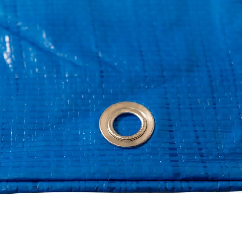 Prelată cu inele RURIS 12012, PE albastru, 3 m x 4 m, densitate 120 gsm, cu margini ranforsate și inele metalice pentru fixare.