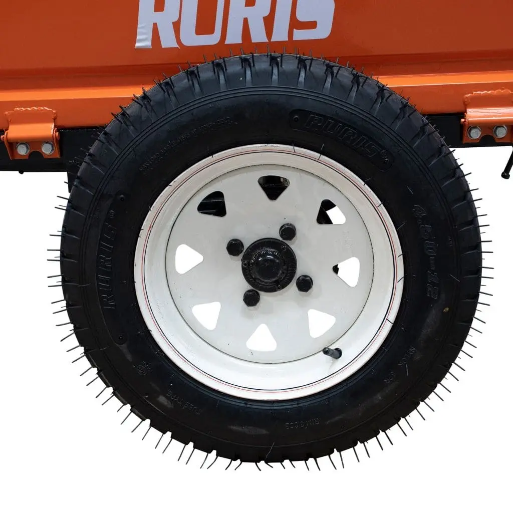 Remorcă RURIS 450S pentru motosape RURIS, capacitate maximă 450 kg, basculare manuală, frânare mecanică cu pedală, roți 4.00-12, benă 1000x1000x300 mm